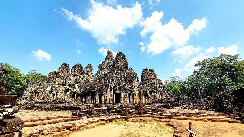 Sie werden um 8:0 Uhr von Ihrem Hotel abgeholt. Wir besuchen den lokalen Markt auf dem Weg nach Angkor. Wir besichtigen das südliche Tor von Angkor Thom. Dann erkunden wir interessante Tempel: Bayon, Baphoun, Phimeanakas, Elefanten Terrasse und Lepra König Terrasse. Danach fahren wir nach Taphrom, Tomb Raider Tempel.